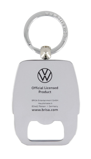 Praktische sleutelhanger met VW T4 Bus wit. De Volkswagen sleutelhanger heeft een geïntegreerde flesopener. Handig en stijlvol, en altijd iets bij de hand om flessen te openen. Het oppervlak is verchroomd met hard email. Deze praktische gadget bundelt al je sleutels op een handige en leuke manier. Formaat: 4 x 9 x 0,4 cm. De keyring is verpakt in in een blister verpakking.