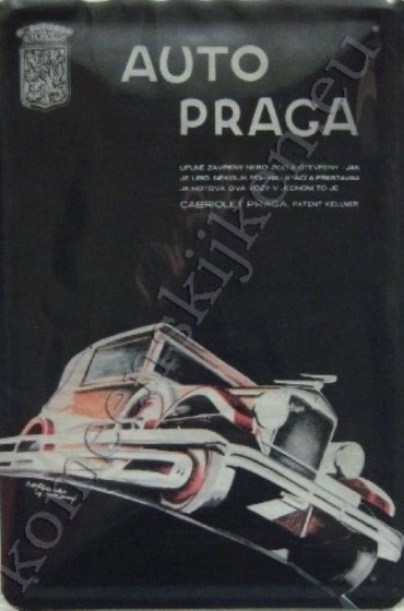Tin sign auto Praga. Een vooroorlogs Tsjechisch automerk. De blikken muurplaat is gebold met rond gebogen rand. Formaat 20x30 cm. categorie auto`s