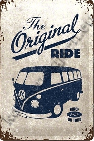 Metalen reclamebord Volkswagen bulli T1, The original ride. Since 1950 on tour. De afbeeldingen zijn in reliëf ( 3D / voelbaar). Het wandbord is gebold met rond gebogen rand. Formaat 20x30 cm. categorie: auto`s, VW bus. Ref. : NA22188