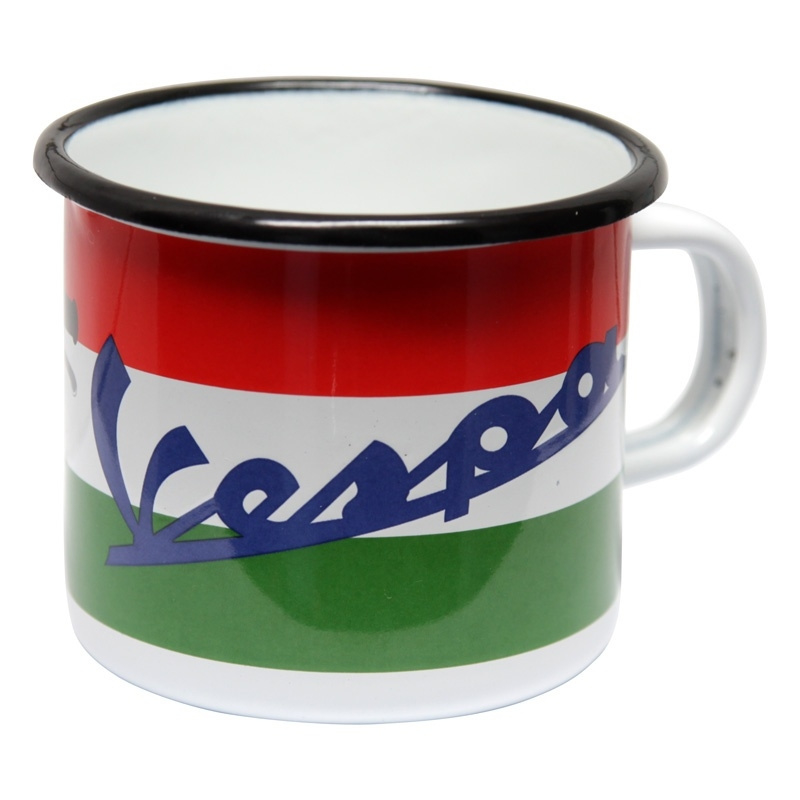 Mooie emaille beker van vespa. Deze nostalgische mok is alleen geschikt voor handafwas. Het fromaat is 8 cm in doorsnede en 7,5 cm hoog.