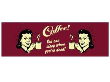Mooie emaille beker Coffee! you can sleep when you're dead! Het formaat is 9 cm in doorsnede en 9 cm hoog. inhoud ca. 0,5 liter. Kan wel in de vaatwasser maar niet in de magnetron. Voor koffie en thee en veel meer!