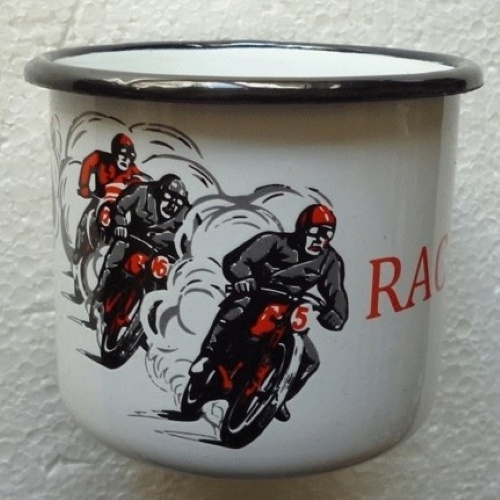 Leuke serie van aardewerk mokken maar ook klassieke emaille mokken.